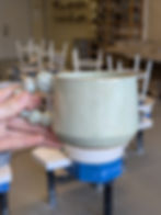 Vervolgcursus: In 7 lessen van 2,5 uur leer je nieuwe technieken voor de draaischijf. De lessen worden in groepen van 4 tot 8 personen gegeven. In de vervolgcursus gaan we leren hoe je vanuit een cilinder een mok met oor, pot met deksel en een vaasje met een smalle nek kan maken.